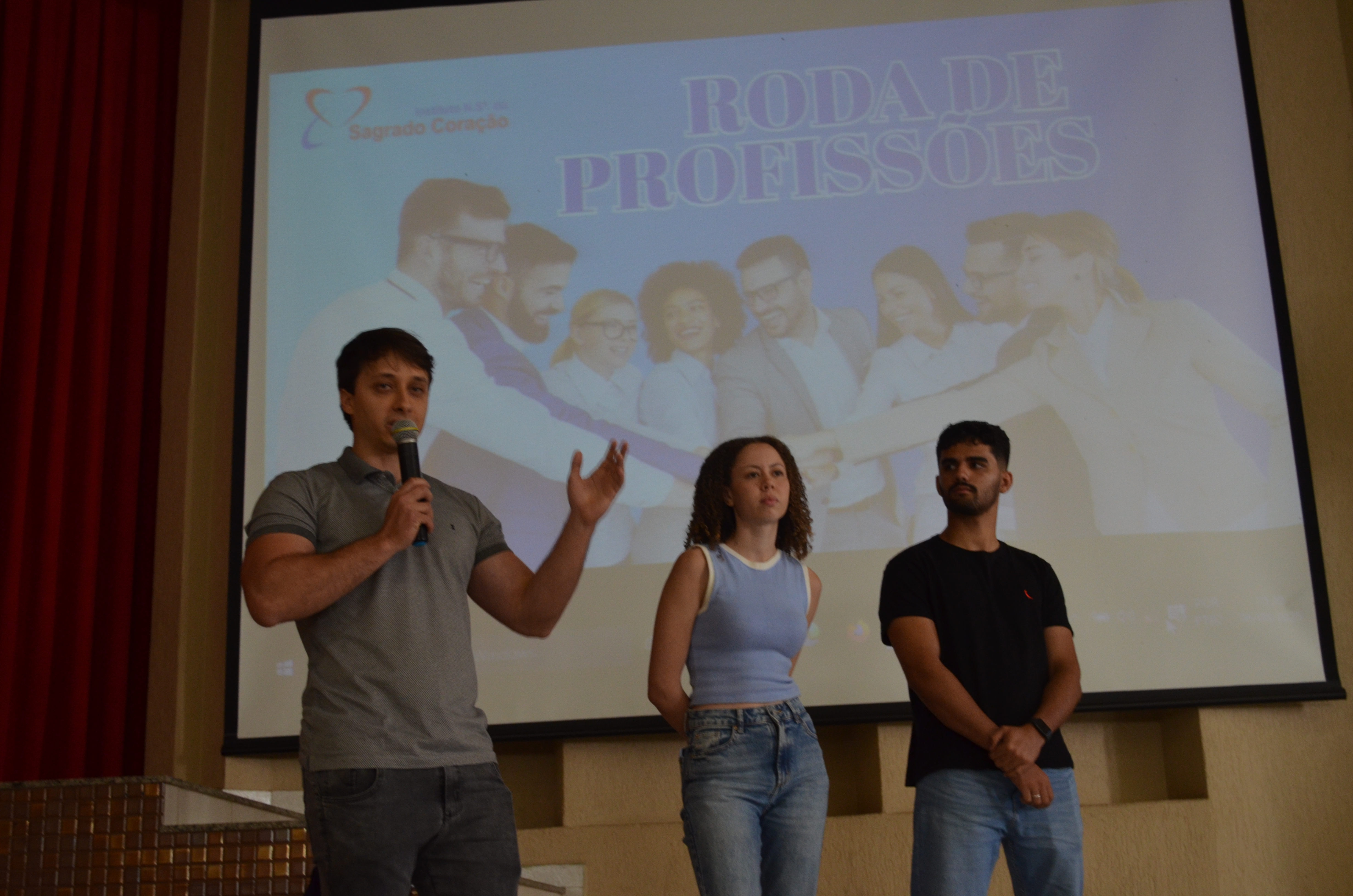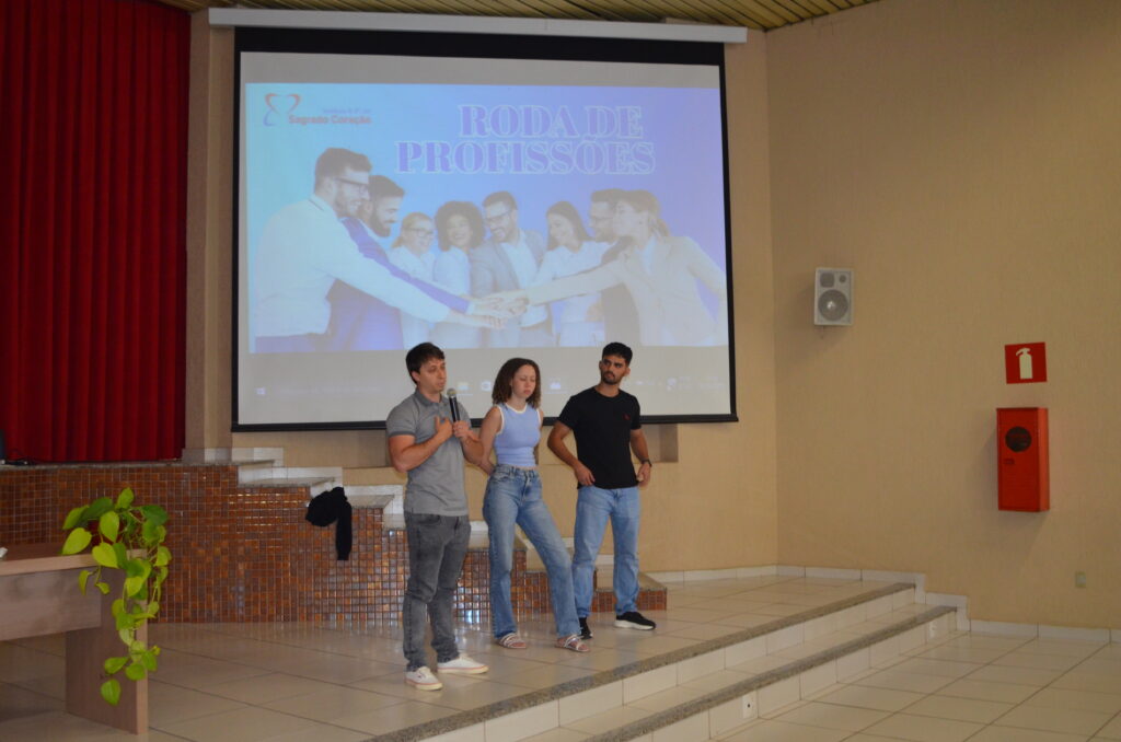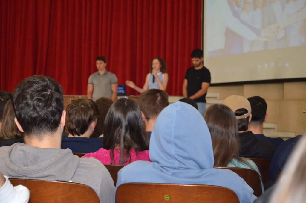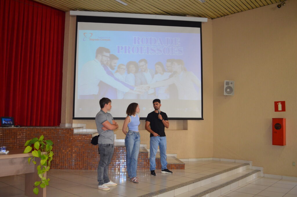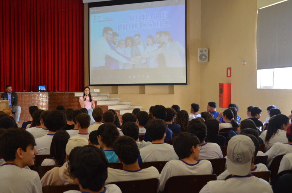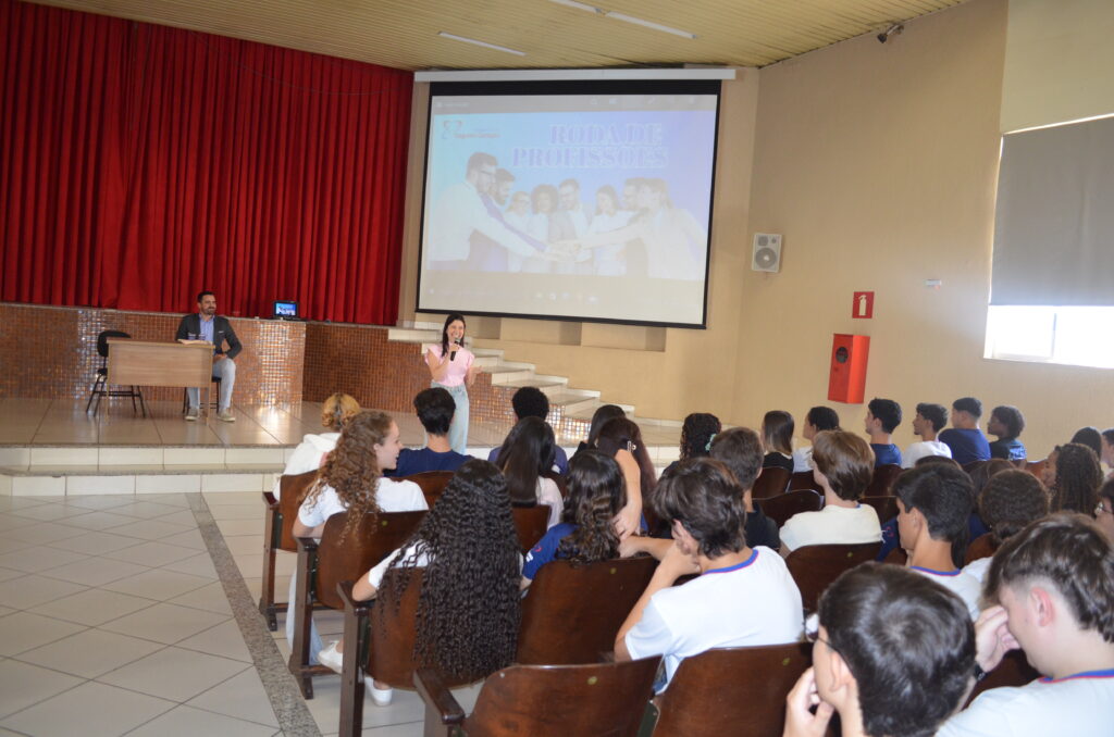 Na manhã do dia 6 de agosto, os alunos do Ensino Médio participaram de uma enriquecedora Roda de Profissões, evento que trouxe ex-alunos do colégio, hoje estudantes em renomadas universidades federais, para compartilhar suas vivências no ensino superior. Convidados Especiais: Gabriel, atualmente cursando Engenharia Mecânica na UFV, Sarah, cursando Medicina na UFMG, Luis Gustavo, cursando Medicina Veterinária na UFMG.